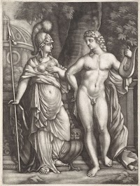 Poëzie op een sokkel in een antieke tempel, Jan Wandelaar, after Frans van Mieris, 1725