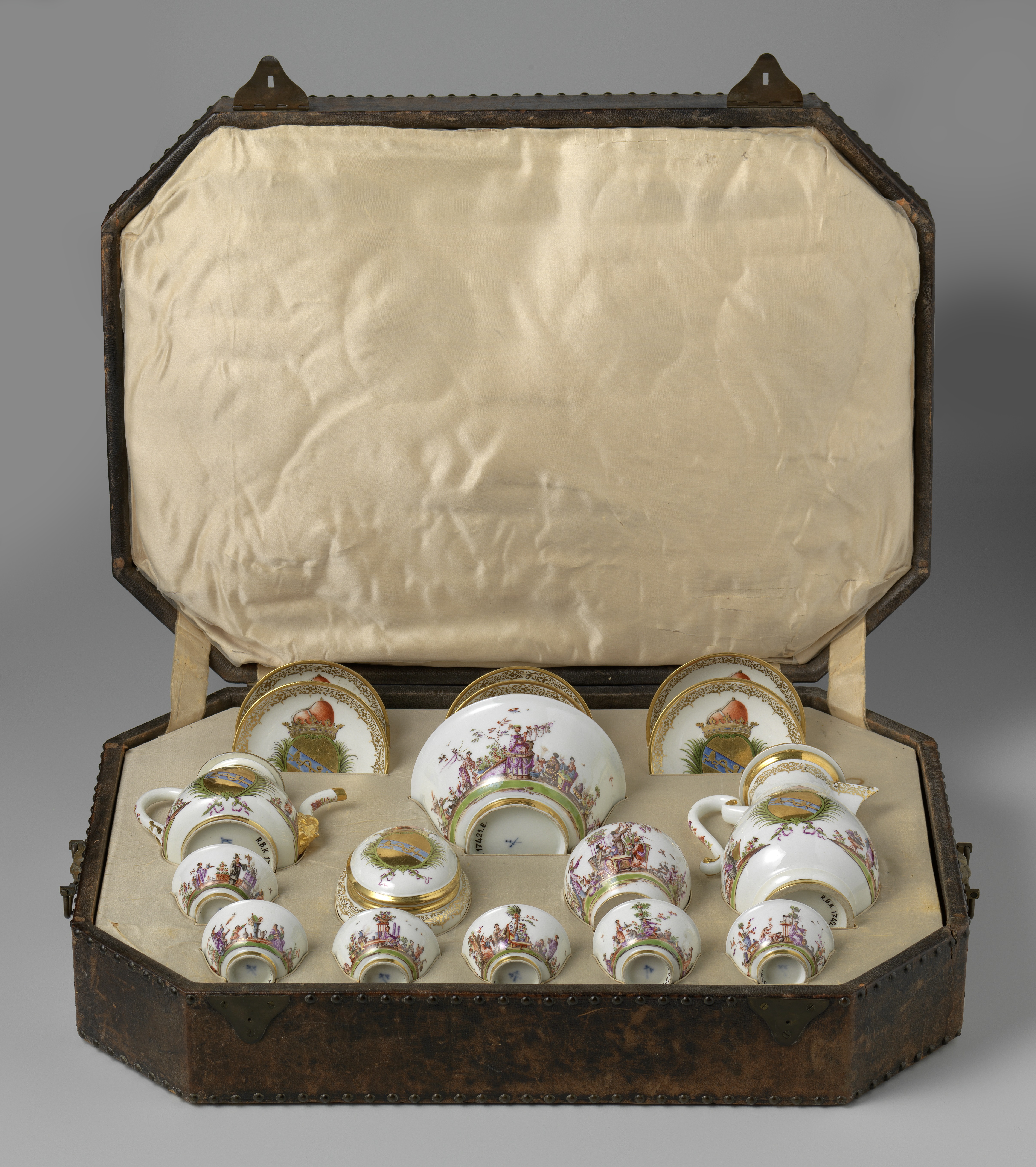Portret van Frederik Augustus II, hertog van Saksen en koning van Polen. Op de plint zijn wapenschild.