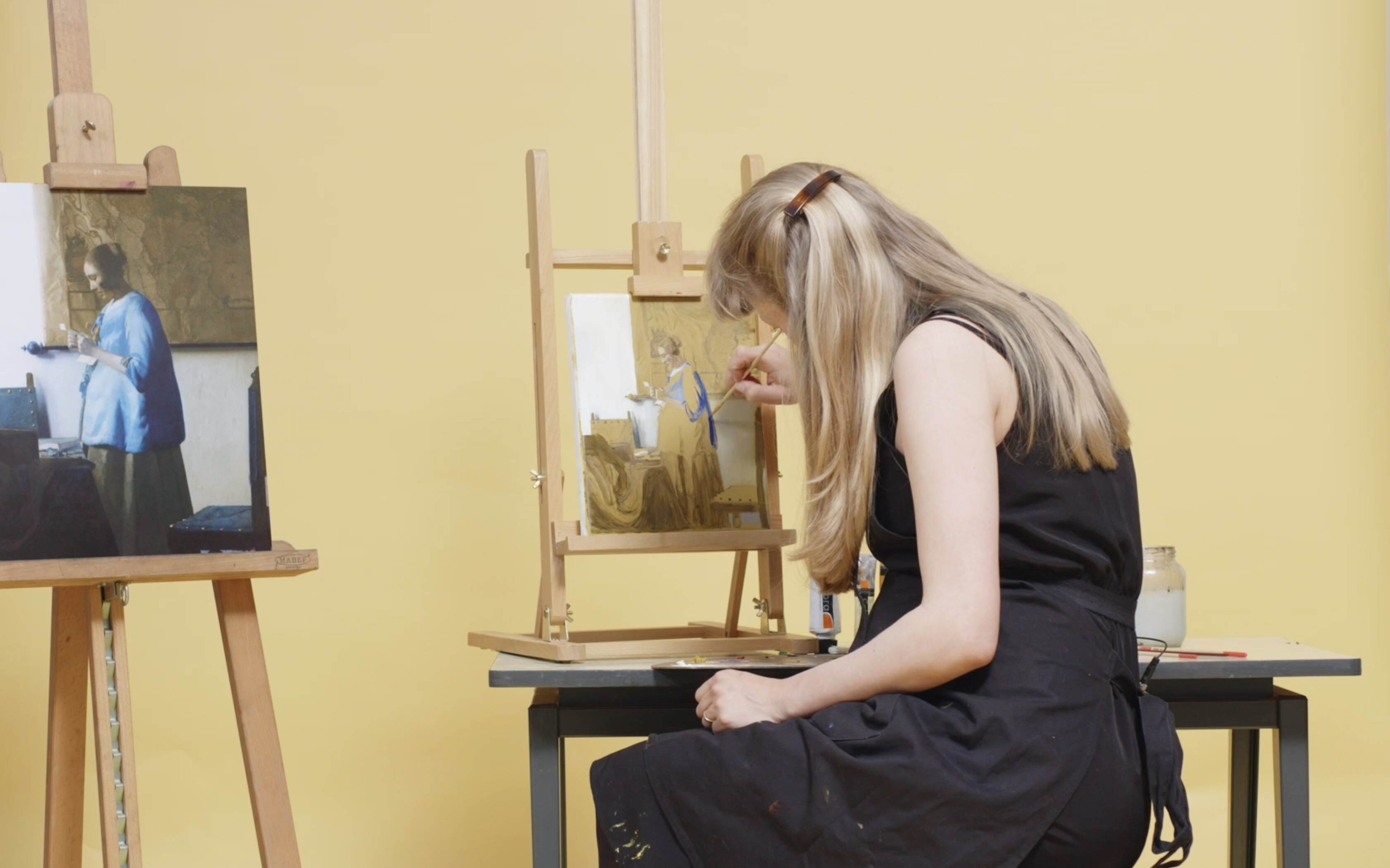 …; ? sale Pieter van der Lip (1655-1712), Amsterdam, 14 June 1712, no. 22, fl. 110;{Hoet and Terwesten 1752-1770, vol. 1 (1752), p. 147.} …; ? collection Mozes de Chaves (1718-1762), Amsterdam, 1759;{In Meijer 1947, p. 12 an inventory is included of the collection Mozes de Chaves: ‘Staat en Inventaris van den Boedel en Nalatenschap van Wijlen de Heer Mozes de Chaves’ on which the painting is mentioned as follows: ‘Een blauwe Meisje door Vermeer van Delft’.} his sale, Amsterdam (H. de Winter and J. Yver), 30 November 1772 sqq., no. 23, as ‘Van der Neer (de Delfsche)’, fl. 40, to the dealer Fouquet;{Exh.cat. Dresden 2021, p. 230; Copy Cabinet des Estampes, Bibliothèque Nationale, Paris.} …; sale Pieter Lyonet (1706-1789, The Hague), Amsterdam (P.B. Bunel et al.), 11 April 1791 sqq., no. 181, fl. 43, to the dealer P. Fouquet;{Copy RKD.} …; anonymous sale, Amsterdam (P. van der Schley et al.), 14 August 1793 sqq., no. 73, fl. 70;{Copy RKD; in Liedtke 2008 incorrectly as no. 739.} …; sale Herman ten Kate (1741-1800, The Hague), Amsterdam (P. van der Schley et al.), 10 June 1801 sqq., no. 118, fl. 110, to Taijs;{Copy RKD.} …; sale Auguste-Louis-Cesar-Hyppolite-Theodore de L’Espinasse de Langeac (1759-1814), Paris (A. Paillet and H. Delaroche), 16 January 1809 sqq., no. 85, fr. 200, to Augustin Lapeyrière (1779-1831), Paris;{Copy Philadelphia Museum of Art.} his sale, Paris (M. Lacoste), 19 April 1825 sqq., no. 127, fr. 2,060 or fr. 1,060, to Berthaud;{Copy RKD1; copy Philadelphia Museum of Art.} …; the dealer John Smith, London, 1831;{Sebag-Montefiore and Armstrong-Totten 2013, p. 30, n.27.} by whom, £73 10 s, to Adriaan van der Hoop (1778-1854), Amsterdam, 1839;{Ibid., p. 22.} by whom bequeathed to the Academie voor Schone Kunsten, Amsterdam; transferred to the City of Amsterdam, 1885; on loan to the museum since 1885