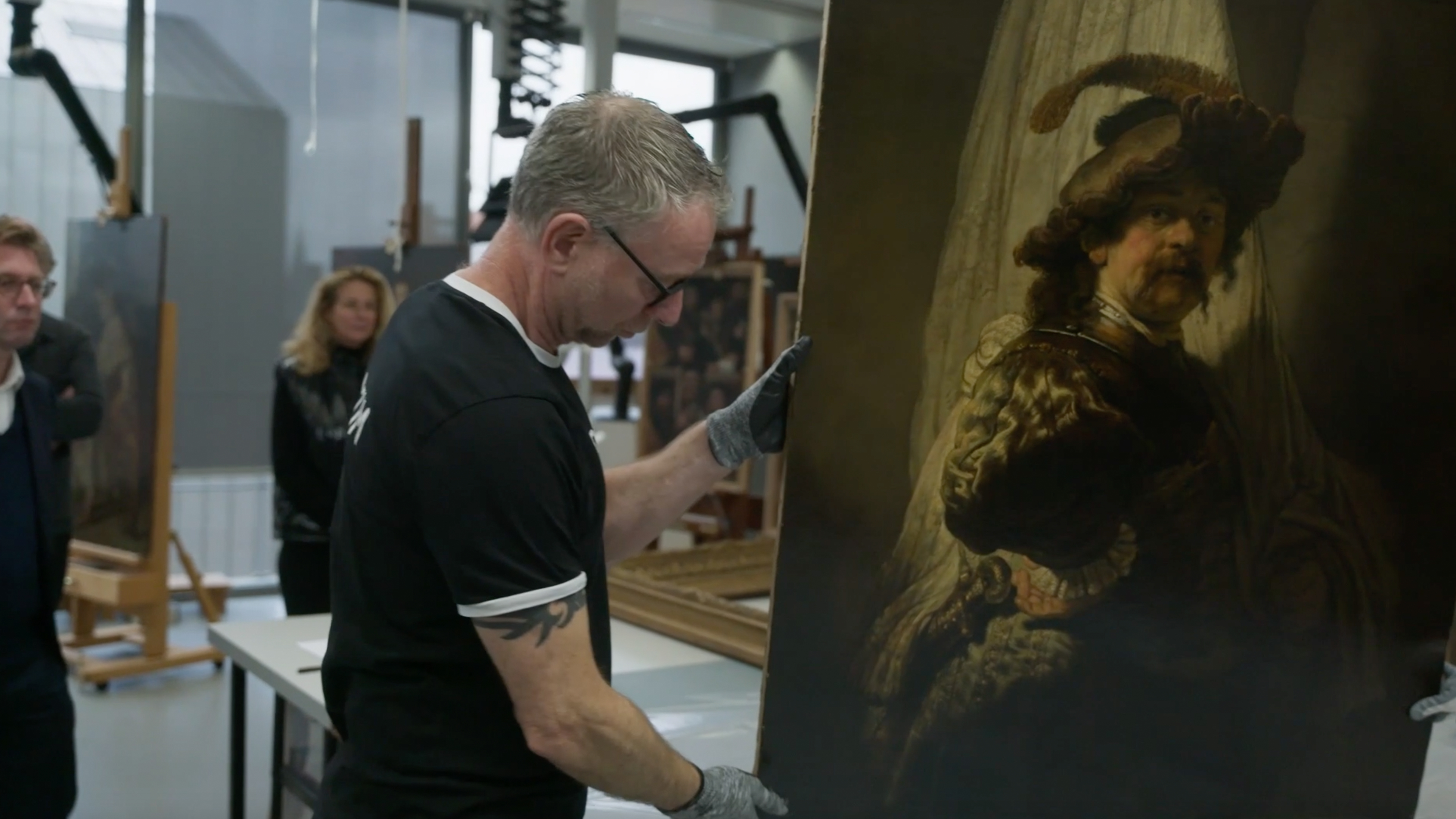 Trots poseert Rembrandts vaandeldrager bij een zuil, hét symbool van standvastigheid, zijn dolk is binnen handbereik. Vaandeldragers droegen het vaandel van een schutterij of leger. Ze moesten dit symbool verdedigen met hun leven. Toen Rembrandt De vaandeldrager schilderde was hij net voor zichzelf begonnen en experimenteerde hij met een losse schilderstijl. Hij koos zichzelf als model: achter de walrussnor is Rembrandts eigen gezicht te herkennen.