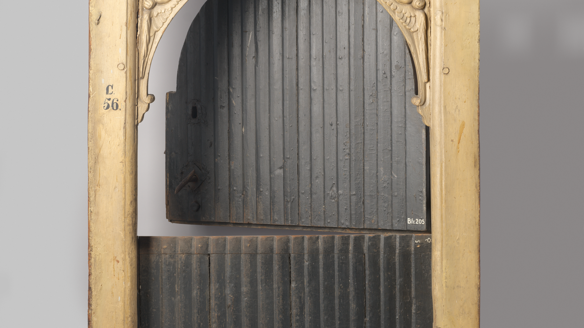 Linnenkasten hadden een prominente plek in huis. De deuren van dit exemplaar verbeelden Bijbelse scenes met Susanna en de ouderlingen. Vanwege haar geloof en kuisheid was zij een voorbeeld voor vrouwen.